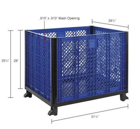 תעשייתי קל הרכבה פלסטיק תיבת אחסון בתפזורת עגלה מיכל צבע כחול 39-1/4 "l x31-1/2" w x 29 "h הכולל עם קסטרים